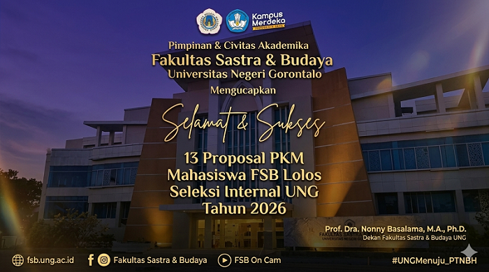 fsb.ung.ac.id, Gorontalo – Fakultas Sastra dan Budaya (FSB) Universitas Negeri Gorontalo (UNG) mencatatkan capaian membanggakan dengan lolosnya 13 proposal Program Kreativitas Mahasiswa (PKM) dalam seleksi internal tingkat universitas. Hasil ini menjadi langkah awal bagi mahasiswa FSB untuk melaju ke kompetisi nasional, yakni Pekan Ilmiah Mahasiswa Nasional (PIMNAS). Seleksi internal PKM di UNG merupakan tahapan penting untuk menyaring proposal […]