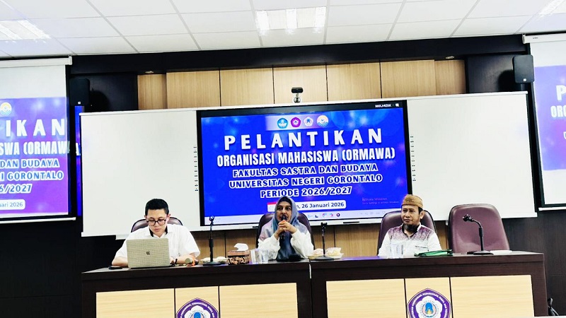 fsb.ung.ac.id, Gorontalo – Dekan Fakultas Sastra dan Budaya (FSB) Universitas Negeri Gorontalo (UNG) secara resmi melantik pengurus Organisasi Mahasiswa (Ormawa) FSB periode 2026 dalam kegiatan yang digelar di Aula Saronde FSB, Senin (26/1/2026). Pelantikan ini menjadi penanda dimulainya masa kepengurusan baru Ormawa fakultas yang diharapkan mampu menjadi motor penggerak aktivitas kemahasiswaan di lingkungan FSB. Dalam sambutannya, Dekan […]
