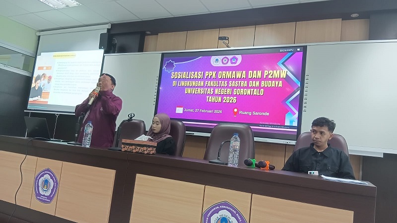 fsb.ung.ac.id, Gorontalo – Fakultas Sastra dan Budaya (FSB) Universitas Negeri Gorontalo (UNG) menyelenggarakan Sosialisasi Program Penguatan Kapasitas Organisasi Kemahasiswaan (PPK Ormawa) dan Program Pembinaan Mahasiswa Wirausaha (P2MW) pada Jumat, 27 Februari 2026. Kegiatan ini dilaksanakan sebagai upaya mendorong peningkatan kapasitas organisasi kemahasiswaan sekaligus menumbuhkan semangat kewirausahaan di kalangan mahasiswa. Wakil Dekan III FSB UNG, Dr. Herson Kadir, […]