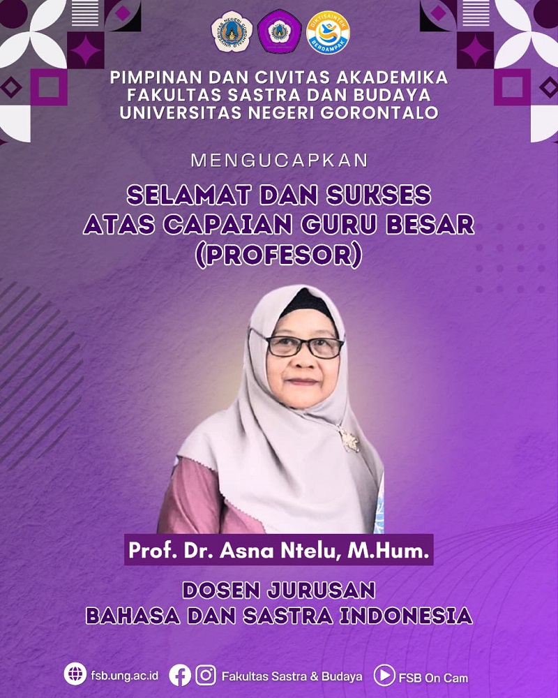fsb.ung.ac.id, Gorontalo – Sebuah kabar membanggakan bagi civitas akademika Fakultas Sastra dan Budaya (FSB) Universitas Negeri Gorontalo (UNG). Salah satu dosen Jurusan Bahasa dan Sastra Indonesia FSB UNG yakni Prof. Dr. Asna Ntelu, M.Hum telah berhasil meraih gelar akademik tertinggi, yaitu Guru Besar/Profesor dalam bidang Analisis Wacana Budaya. Prestasi ini merupakan pengakuan atas dedikasi dan kontribusi yang […]