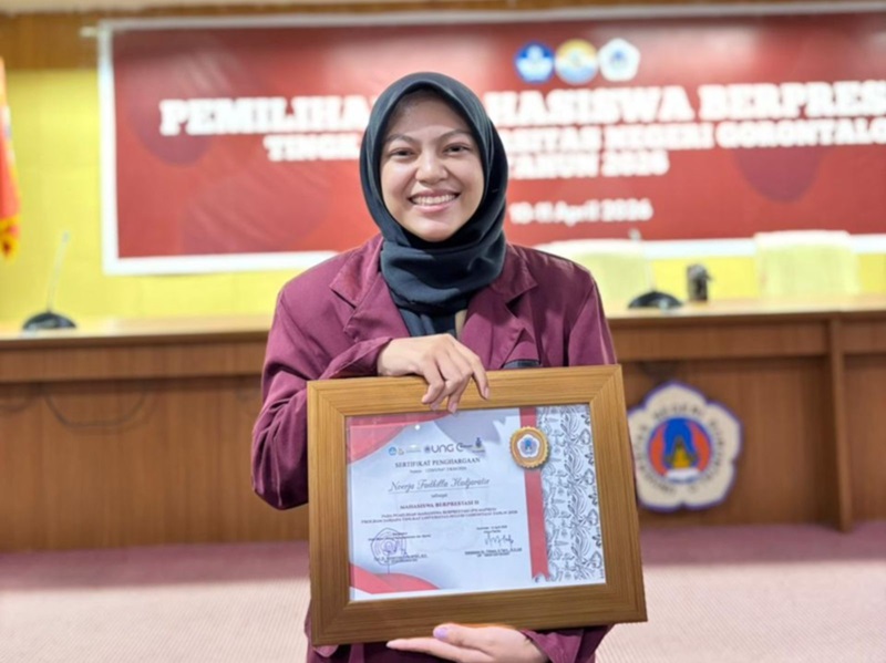 fsb.ung.ac.id, Gorontalo – Prestasi membanggakan kembali ditorehkan mahasiswa Fakultas Sastra dan Budaya (FSB) Universitas Negeri Gorontalo (UNG). Noerja Fadhillah Hadjaratie berhasil meraih Juara II dalam ajang Pemilihan Mahasiswa Berprestasi (Pilmapres) tingkat universitas tahun 2026, mengukuhkan posisi FSB sebagai salah satu fakultas dengan daya saing unggul.