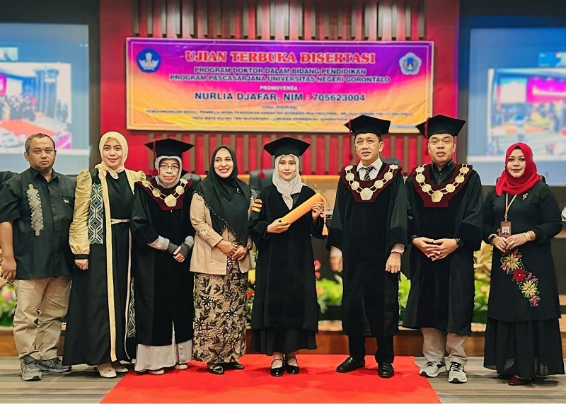 Sidang dipimpin oleh Direktur Program Pascasarjana (PPs) UNG, Prof. Dr. Ir. Mahludin H. Baruadi, M.P, dengan tim promotor terdiri dari Prof. Dr. Maryam Rahim, M.Pd, Prof. Dr. Suleman Bouti, S.Pd, M.Hum, serta Dr. Mohamad Zubaidi, S.Pd M.Pd, dengan penguji internal Prof. Dr. Phil. Ikhfan Haris, M.Sc dan Dr. Wiwy Triyanty Pulukadang, S.Pd., M.Pd. Sementara itu, penguji eksternal Prof. Dr. Elindra Yetti, M.Pd Guru Besar dari Universitas Negeri Jakarta turut memberikan perspektif lintas institusi.