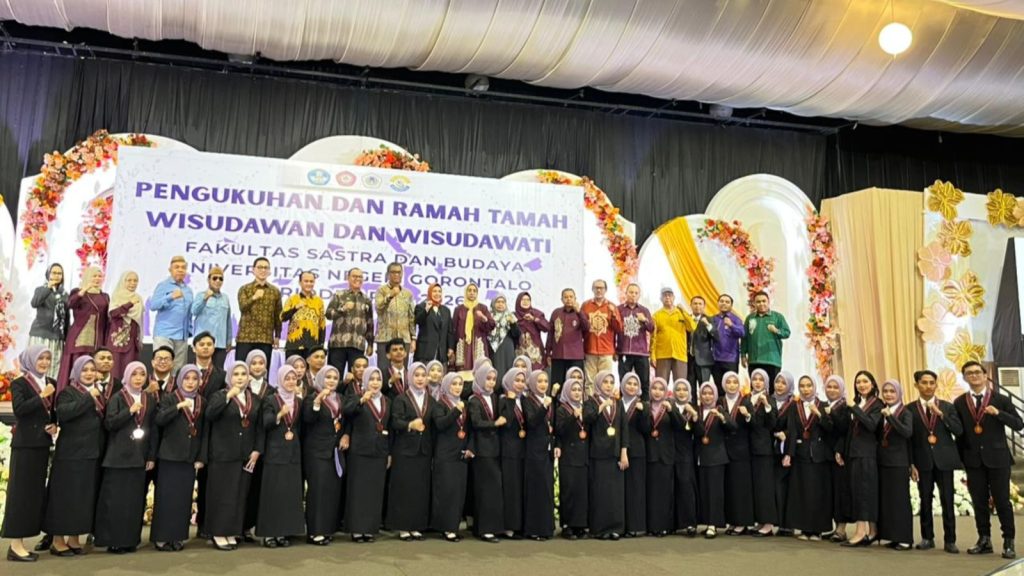 fsb.ung.ac.id, Gorontalo – Selasa (07/04/2026), bertempat di Grand Sumber Ria Ballroom, Fakultas Sastra dan Budaya (FSB) Universitas Negeri Gorontalo (UNG) menggelar prosesi pengukuhan sarjana yang dirangkaikan dengan acara ramah tamah wisudawan dan wisudawati dalam suasana khidmat dan penuh kehangatan. Kegiatan ini menjadi penanda resmi berakhirnya masa studi sekaligus awal perjalanan baru para lulusan di tengah masyarakat.