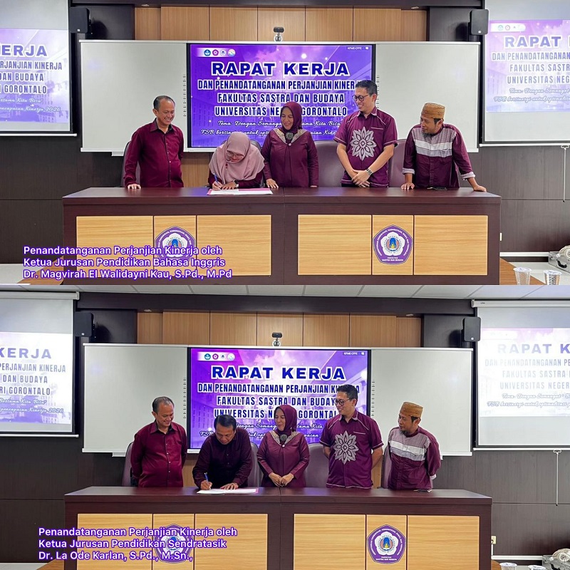 fsb.ung.ac.id, Gorontalo – Dalam upaya memperkuat tata kelola fakultas yang transparan, akuntabel, dan berorientasi pada kinerja, para pimpinan jurusan di lingkungan Fakultas Sastra dan Budaya (FSB) Universitas Negeri Gorontalo (UNG) resmi menandatangani Perjanjian Kinerja bersama Dekan FSB pada Rabu, (11/02/2026), bertempat di Ruang Loolade FSB UNG.